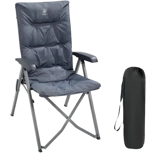 - Design pliant compact : une fois repliée, la chaise prend moins de place que d’autres modèles similaires, ce qui facilite son transport et son rangement.