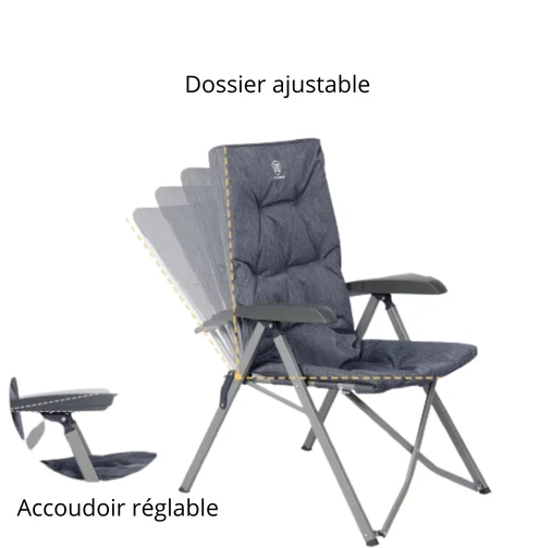 Le fauteuil de camping confortable dispose de plusieurs caractéristiques qui augmentent son confort et sa praticité :