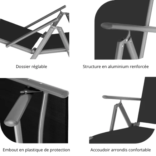 • Le textilène peut chauffer au soleil direct (prévoir un coussin ou une serviette pour un confort optimal par forte chaleur)